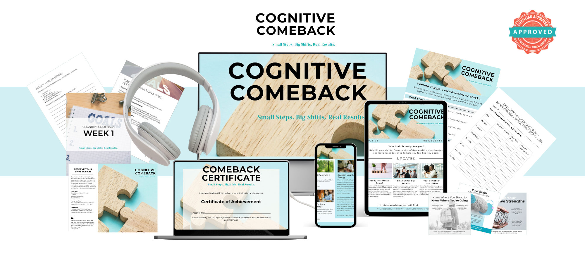That’s why I poured everything into creating the Cognitive Comeback Program—a 6-week lifestyle-based course designed not only to address cognitive loss, but to rebuild confidence, day by day.
